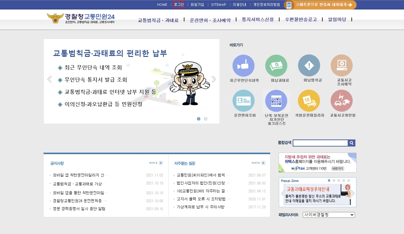 무인단속 관련하여 교통범칙금과 과태료 내역, 납부는 이파인(경찰청교통민원24) 홈페이지를 통해서 할 수 있습니다. 참고로, 내역을 조회하는 단계까지는 이파인 어플로도 가능합니다.