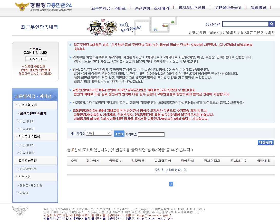 무인단속 관련하여 교통범칙금과 과태료 내역, 납부는 이파인(경찰청교통민원24) 홈페이지를 통해서 할 수 있습니다. 참고로, 내역을 조회하는 단계까지는 이파인 어플로도 가능합니다.