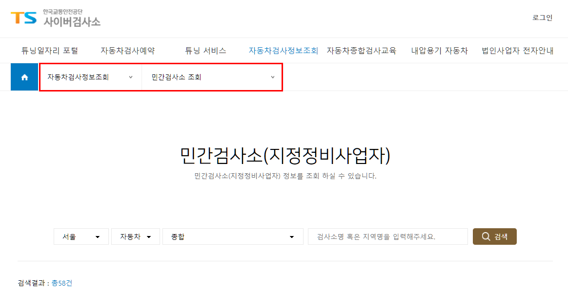 사이버 검사소 홈페이지에서 민간 검사소(지정정비사업자) 정보를 제공하고 있으니 참고하시길 바랍니다.
