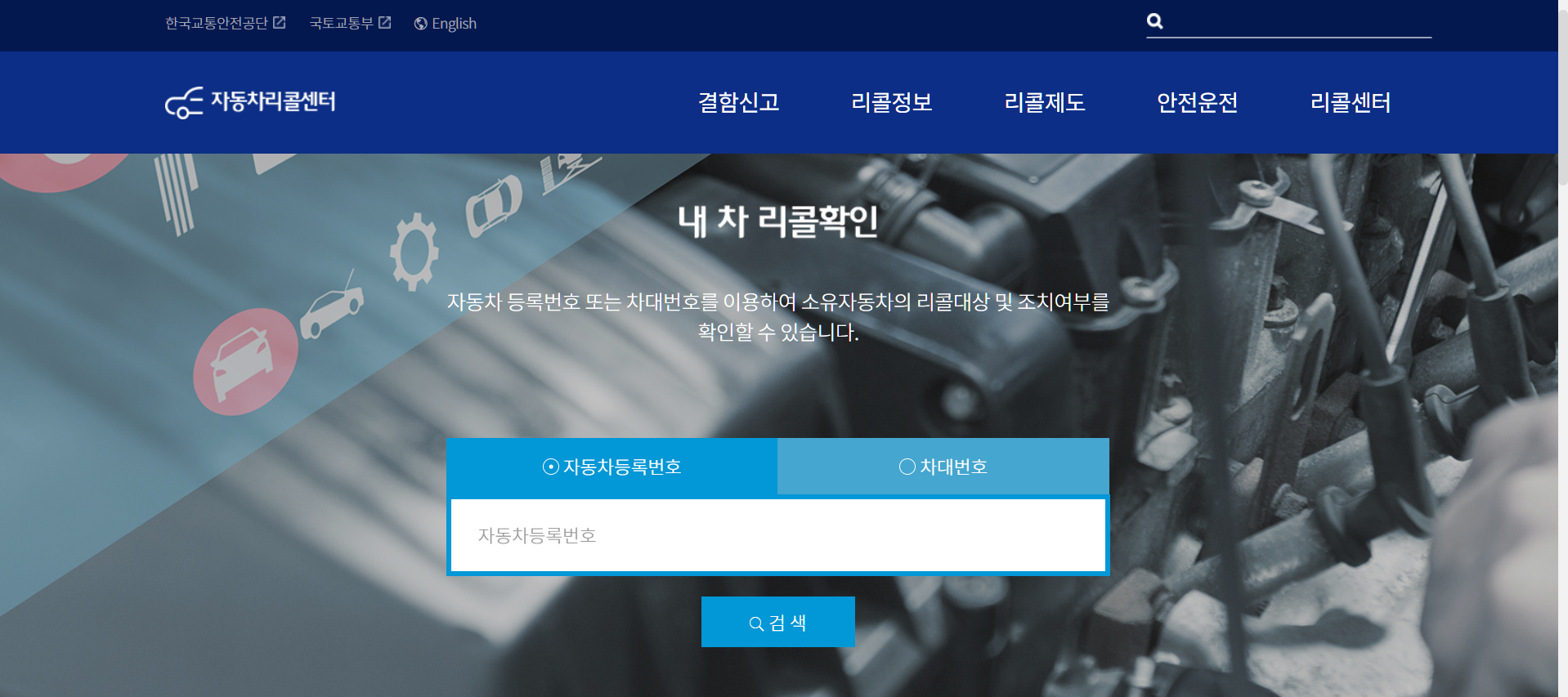이제, 메뉴를 이동해 리콜 알림 서비스를 신청해줍니다.