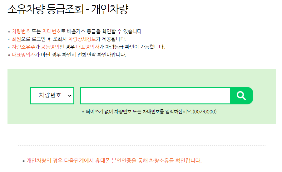 내 차 등급을 확인하기 위해서 우선 환경부의 자동차 배출가스 등급제(클릭) 홈페이지에 접속해주셔야 합니다.