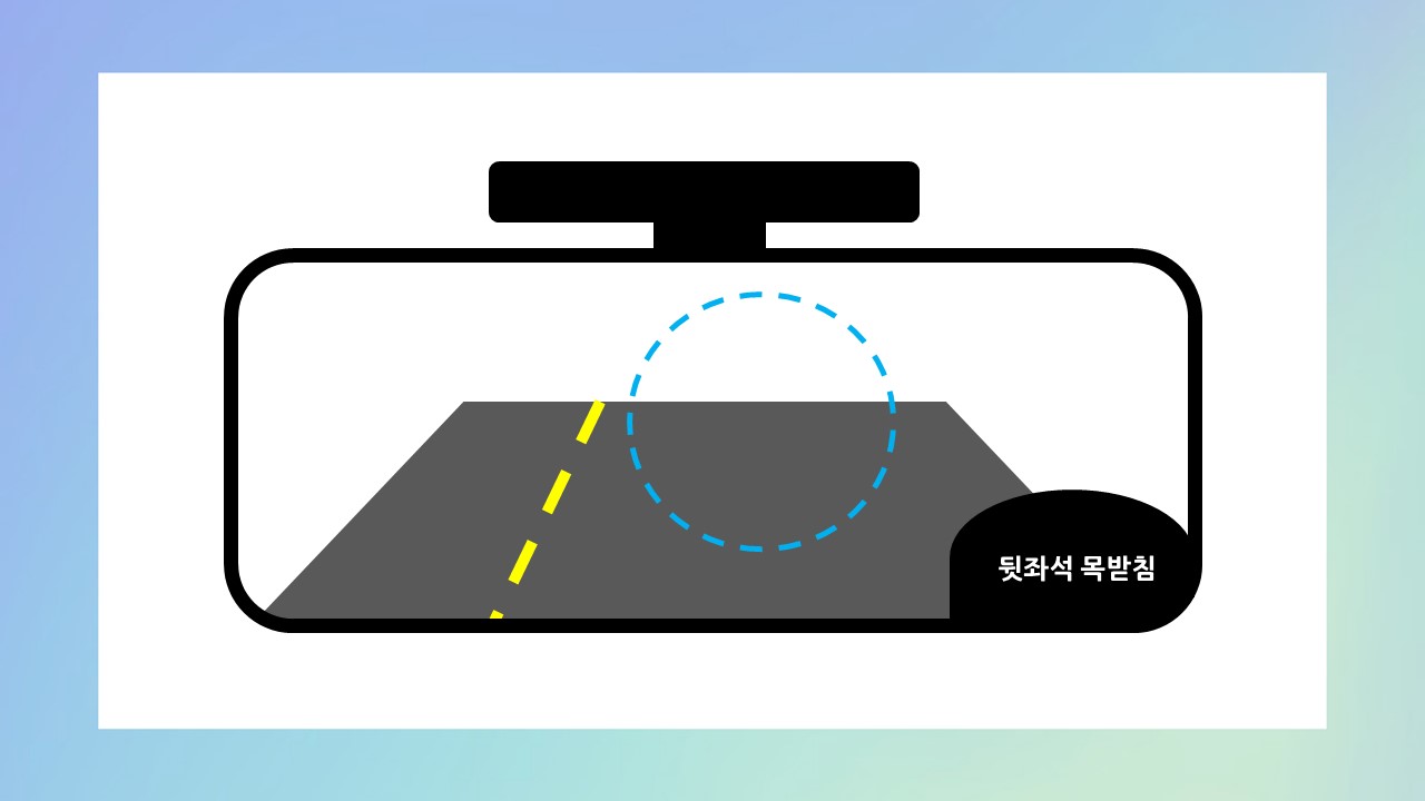 둘째, 뒷좌석의 목받침이 살짝 보이게 맞춥니다.