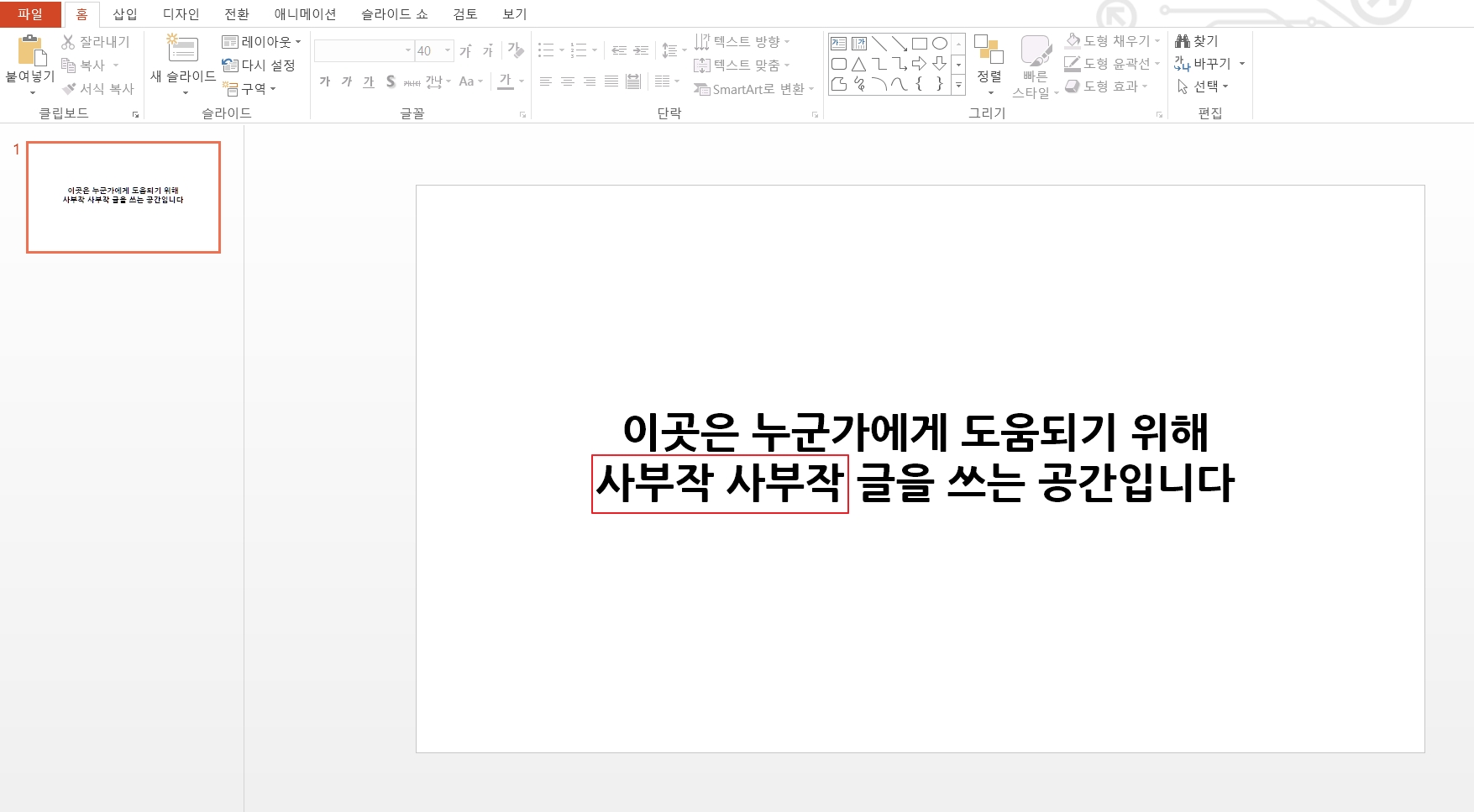 파워포인트를 마치 그림판처럼 이용할 때, 이미지 캡처를 해야 하는데 빨간 밑줄이 있으면 거슬릴 때가 있습니다. 간단하지만 알면 더 좋은 파워포인트 기본 기능 중 '맞춤법 검사'를 설정하는 방법 2가지를 알려드리려고 합니다.