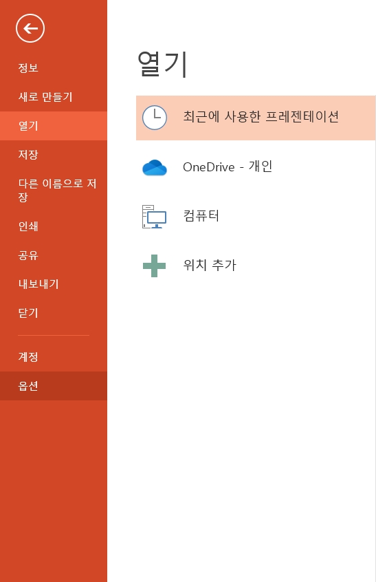 1) 아까와 동일하게 [리본메뉴]에 있는 [파일] - [옵션] 탭을 눌러줍니다.